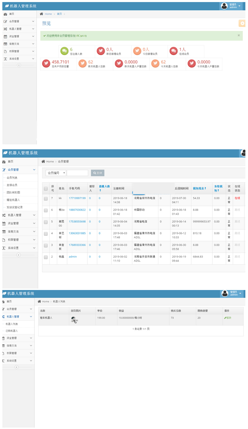 躺赚每每日 后台完善,可设置机器人每天佣金数,可对接短信,个人免签码支付接口