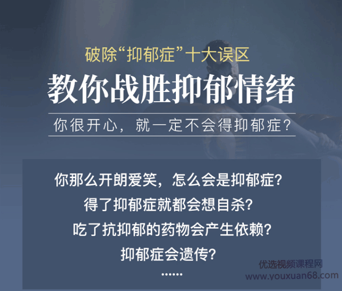 从易得抑郁症的人群、工作感情学习中抑郁症的成因、抑郁症的生理变化、抑郁症的常见形式、隐蔽性抑郁类型、如何缓解抑郁情绪、如何和抑郁者相处等方面,用一点心理学知识教你有效远离抑郁情绪。