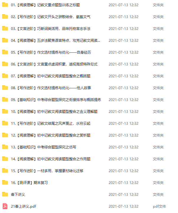 07.【阅读理解】初中记叙文阅读题型整合之概括题