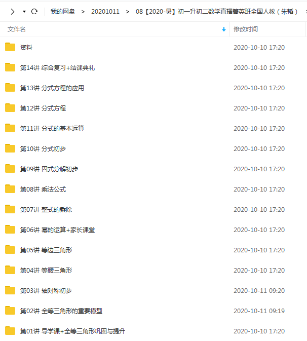 【2020-暑】初一升初二数学直播箐英班全国人教(朱韬)完结