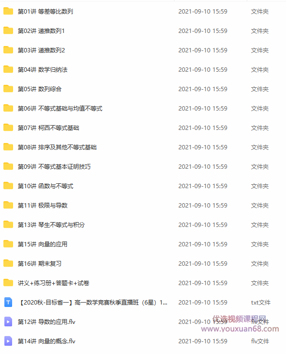 【2020秋-目标省一】高一数学竞赛秋季直播班(6星)