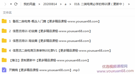 二类电商到底应该怎么做?小白从何下手,老手又该如何突破瓶颈?本课程为你详细讲解淡旺季如何选品,大数据如何分析,新手如何建群等等经验,都是大神们多年累积的有效经验,可让你少走很多弯路,也能拓展思维。现在是信息时代,更是电商时代,以抖音,直播,快手等新兴的电商时代了,要把握好这些新风口,没有相关经验参考怎么玩转?想知道有什么干货,看看目录你就知道了