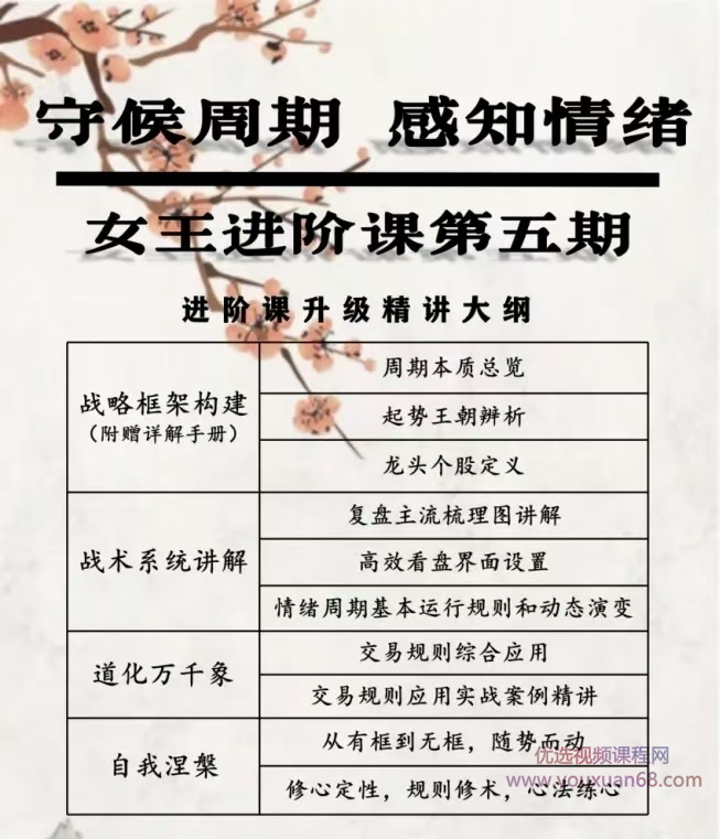 【低吸女王】第五期新课上线,女王战略周期,守候周期感知情绪我是人气龙头周期女王,交易只用周期,交易品种只有起势王朝内人气龙头。