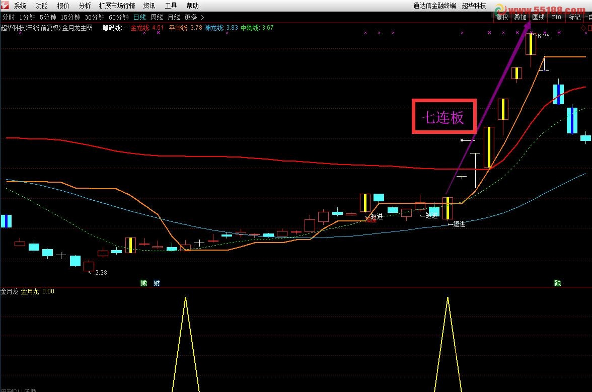 【金月龙】指标为金枪、芈月剑、双龙戏轴三个指标的强势组合升级。指标适合超短和操作,出信号当日极容易冲上涨停板,超短次日冲高快速获利,连板概率较大,能精准捕捉每月连板妖股。基本涨幅3%附近出预警信号,让你完全有机会买入,避免追高的风险!指标公式已经过实战验证,在弱势震荡市依然能抓板获利!