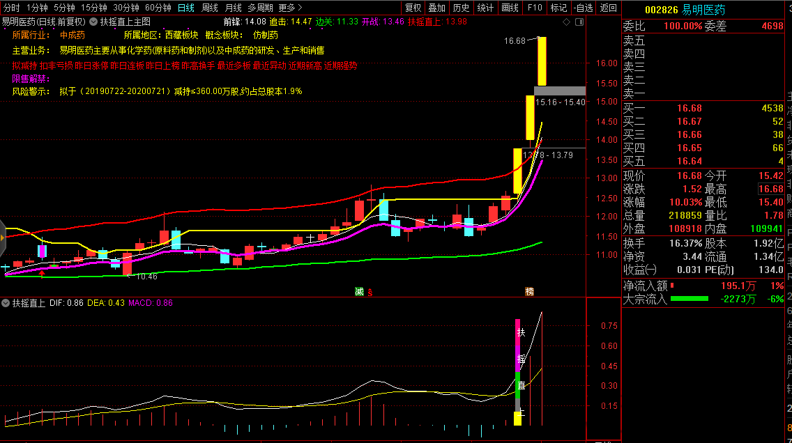 扶摇直上指标里面有两个主板选股,一个创业板选股,一个副图,一个主图,以及主图显示内容补充。和一个赠送的妖股回调到位选股指标。