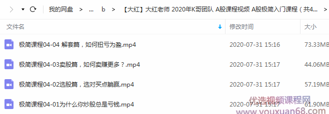 2020年K哥团队大红老师 A股课程 A股极简入门课程4节 视频