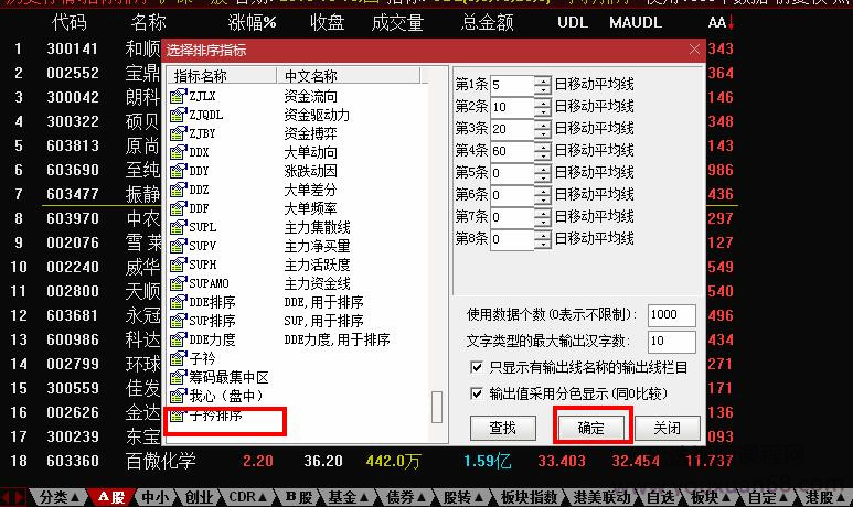 3.子矜排序: 1)对子矜战法选出的股票进行排序,数值越大越好,数值至少>0.5,最好>1。