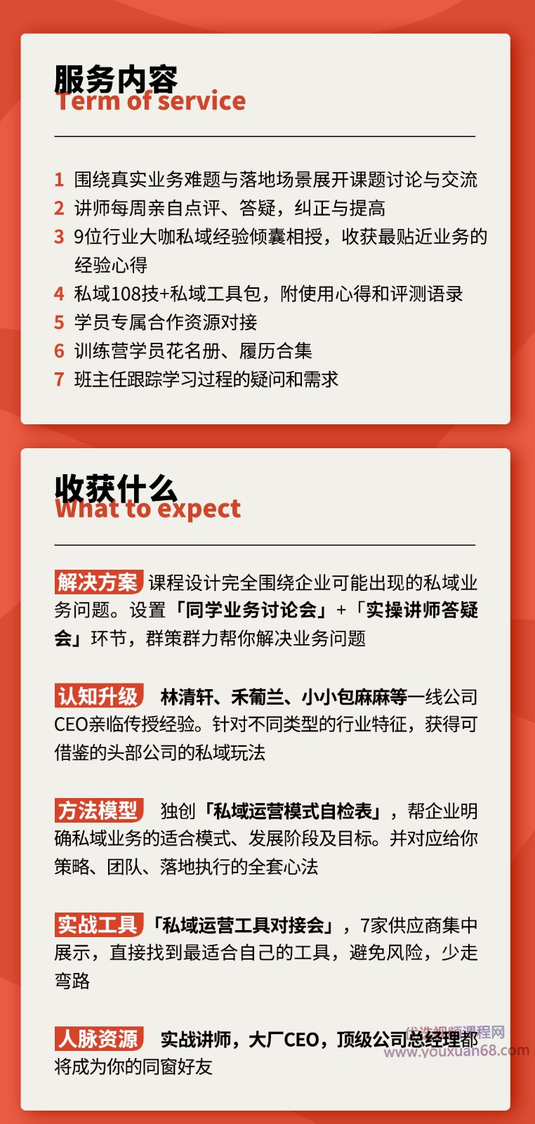 我们将以1个月为时间周期,在线上训练营中以企业实际面临的业务问题为背景,针对品牌方和企业主的私域负责人/操盘手集中性培训,帮助他们实现在思维和执行落地到“上接战略,下达绩效”的效果。