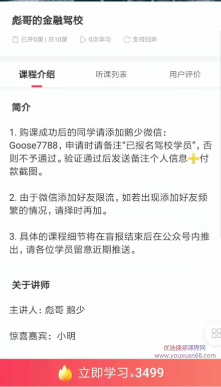 现在他来了,我们的金融驾校就干这个活的。其实学金融驾照的目的不是非要自己去开车,而是要懂开车会坐车,学会辨别一个司机的水平。