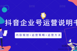 《抖音企业号运营说明书》内容规划+运营策略+运营方法,三节视频课掌握抖音企业号运营