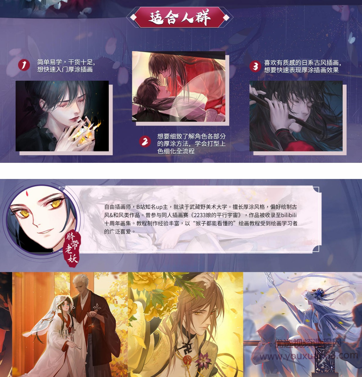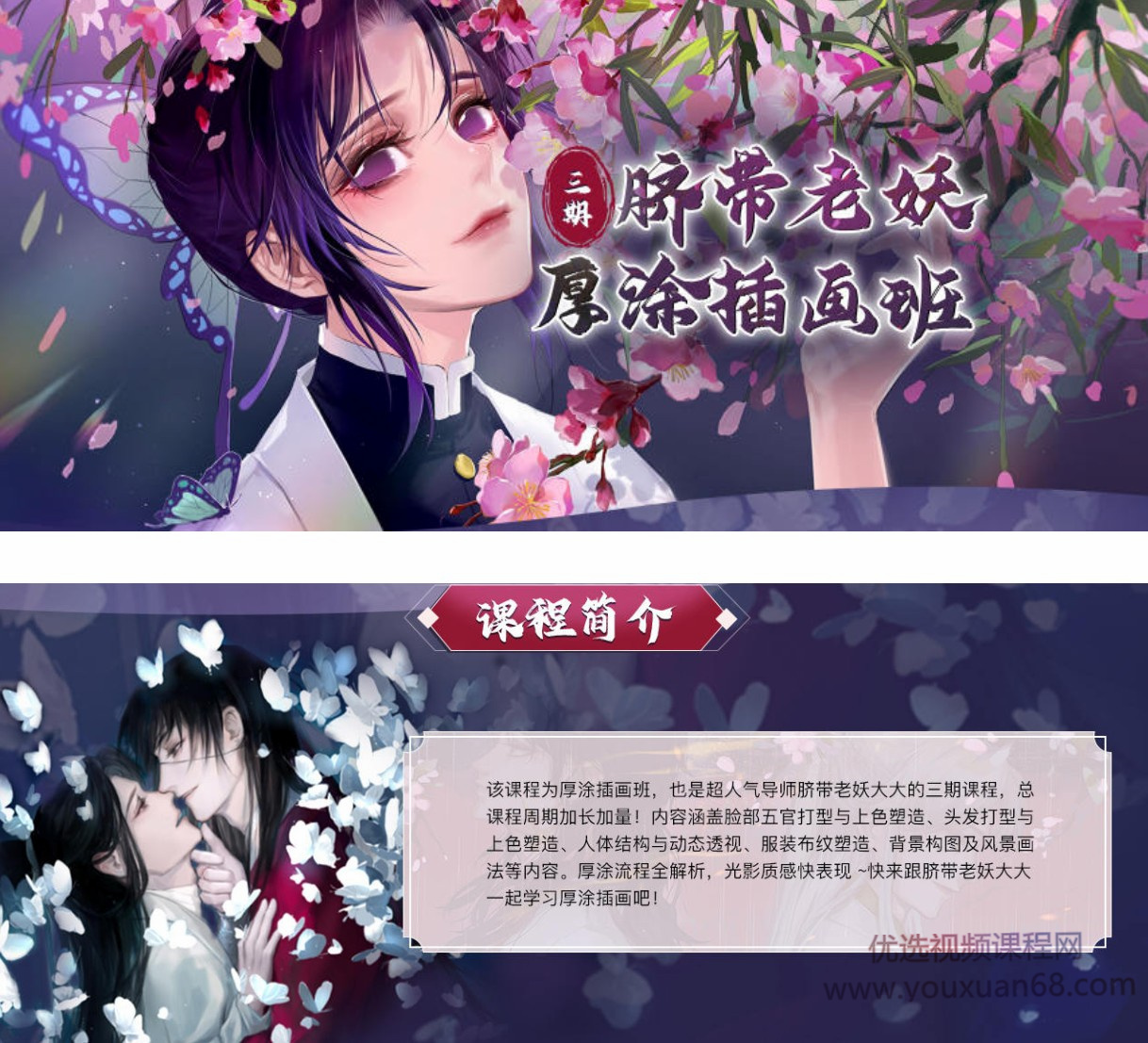 该课程为厚涂插画班,也是超人气导师脐带老妖大大的三期课程,总课程周期加长加量!内容涵盖脸部五官打型与上色塑造、头发打型与上色塑造、人体结构与动态透视、服装布纹塑造、背景构图及风景画法等内容。厚涂流程全解析,光影质感快表现~快来跟脐带老妖大大一起学习厚涂插画吧!