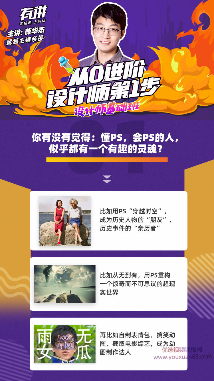 今天,有讲特意请来PS大神一-薛华杰, 联合推出这堂《设计师3基础班:从0进阶设计师第1步》,教大家快速入门PS。