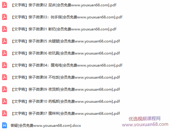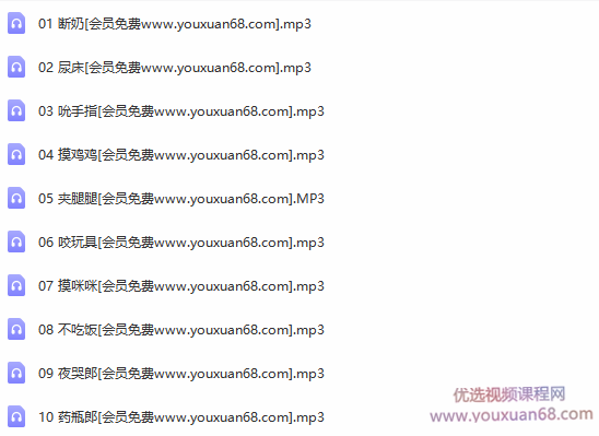 「 断奶 」「 尿床 」「 吮手指 」「 玩鸡鸡 」「 夹腿腿 」「 咬玩具 」「 摸咪咪 」「 不吃饭 」「 夜哭郎 」「 药瓶郎 」