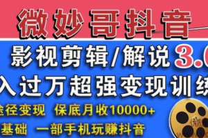 微妙哥抖音影视剪辑及解说3.0:多途径变现,月入过万超强变现训练营
