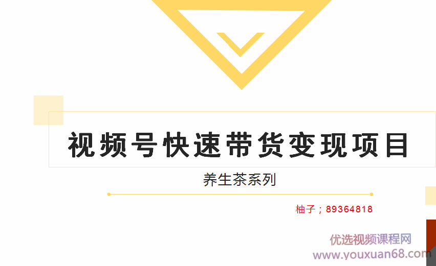 柚子视频号带货实操变现项目,零基础操作养身茶月入10000+【视频教程】