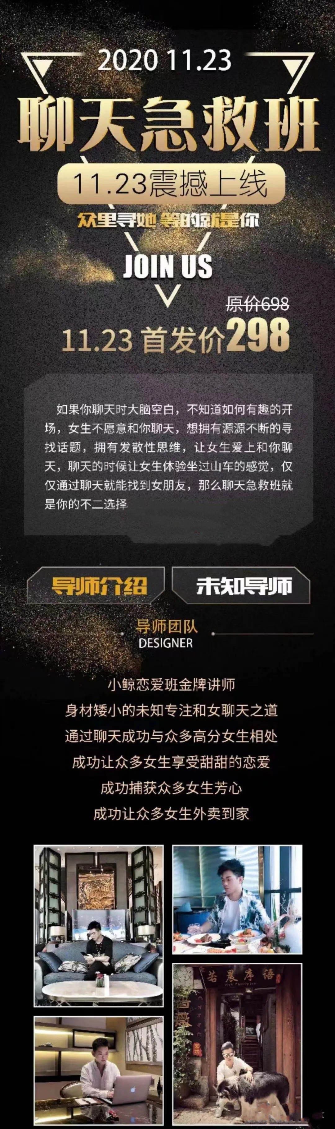 如果你聊天时大脑空白,不知道如何有趣的开场,女生不愿意和你聊天,想拥有源源不断的寻找话题,拥有发散性思维,让女生爱上和你聊天,聊天的时候让女生体验坐过山车的感觉,仅仅通过聊天就能找到女朋友,那么聊天急救班就是你的不二选择。