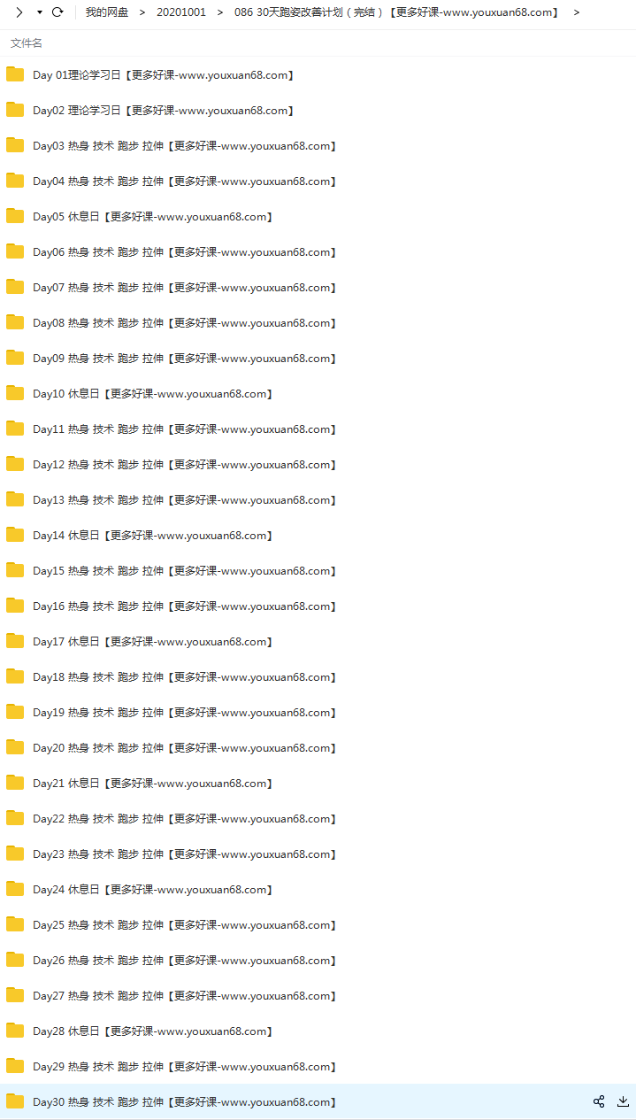 | ├──02 30天跑姿改善课表概述.mov 67.58M