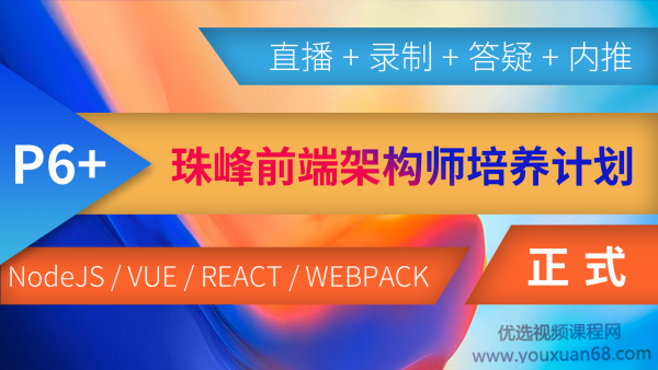 课程来自专注前端培训的珠峰培训,珠峰前端架构师VIP培训课程vip完整版,课程为最新2018年版本,共计52.9G,是前端学习进阶的优质课程,课程对标阿里P6-P7级前端高级工程师,课程官方售价9200元