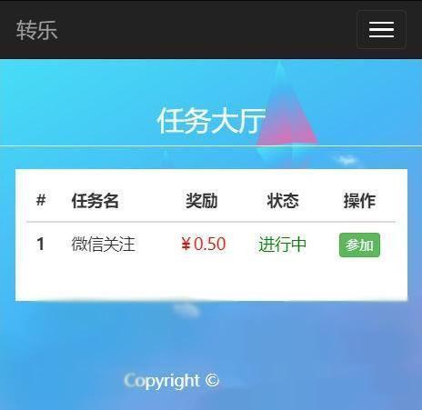 新增使命大厅,网站主能够通过后台发布悬赏使命。用户参与提交使命可获得相应佣金。