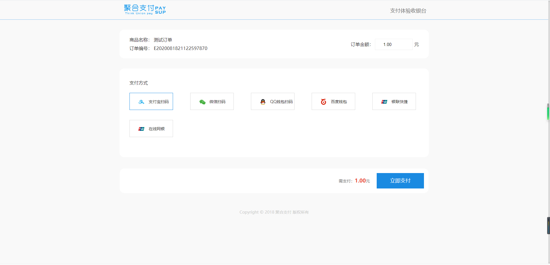 集成了主流支付平台,以下为演示截图,小白不要下载
