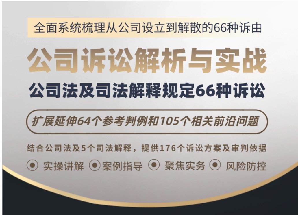 结合公司法及5个司法解释,梳理从公司设立到解散的66种诉由,提供176个诉讼方案及审判依据,延伸64个参考判例和105个相关前沿问题