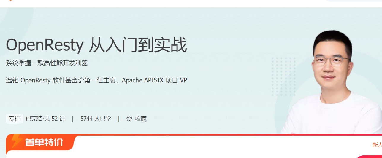 不过,OpenResty的学习资料还比较少,官方也只有API接口文档,而网上能找到的资料也不太系统。可以说,绝大部分的OpenResty使用者全是在摸着石头过河,很难实现系统、权威的学习。
