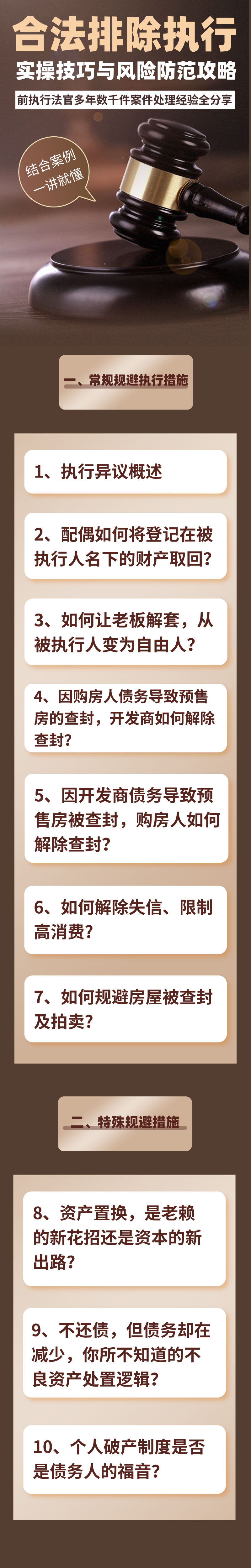 特邀请专业从事不良资产催收、强制执行业务,具有几千件执行案件处理经验的前执行法官,结合典型案例讲解,学完即用