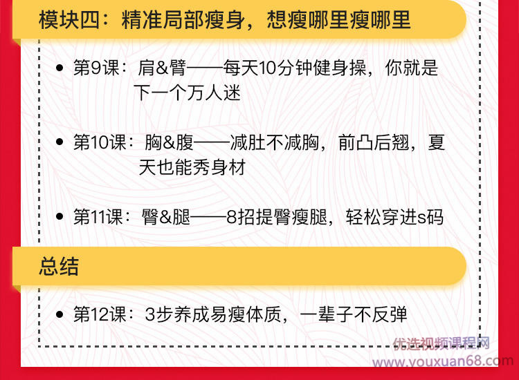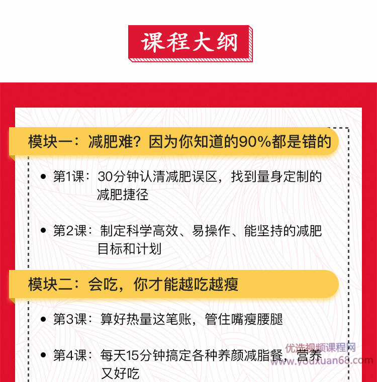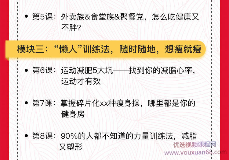1.课内赠送价值399元 “7天饮食计划+7天训练视频” ,照着做就行,轻轻松松瘦5斤;