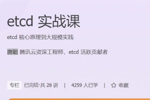 基于此,唐聪教师从本人万级 Kubernetes 集群和 etcd 集群范围的管理相关经历动身,把 etcd 的学习过程分为了大中小三个目的,让你由小及大,从控制一个个学问点的小目的动身,做到理解、纯熟运用 etcd 的中等目的,最终可以圆满处理业务过程中的各类痛点。