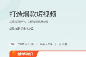 极客时间《打造爆款短视频》从定位到制作,让短视频迅速变现