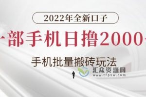 课程来自于猎人联盟2022年全新口子,单台手机日撸2000