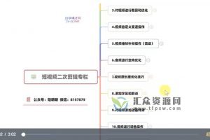 短视频二次剪辑特训 5.0,价值1280元。1部手机就可以操作,0基础掌握短视频二次剪辑和混剪技术。