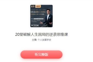 课程来自于 《普通人的系统逆袭》20讲音频课,全面解决20个人生经营底层问题