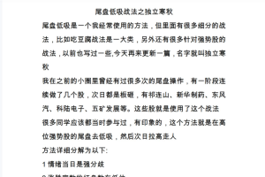 尾盘低吸是一个我经常使用的方法,但里面有很多细分的战法,比如吃豆腐战法是一大类,另外还有很多针对强势股的战法,以前也写过一些,今天再来更新一篇,名字就叫独立寒秋