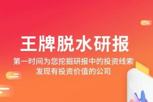 很多投资者面对海量研报无从下手,看不懂晦涩难懂的专业术语,分辨不了其中的各种套路,产生了各种的焦虑。王牌脱水研报让你这些焦虑通通消除。 用最前沿的大数据技术+30位专业分析师,为你每天筛选最具价值的三篇研报。涵盖短期和中长期,匹配你的投资偏好,跑赢大盘高胜率分析师,结合热点挖掘潜力个股,分析师推测收益回测,让你抓到更多大牛股,轻松投轻松赚。