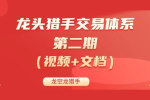 课程来自于 【龙空龙猎手】龙头猎手交易体系第二期