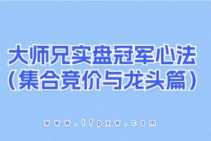 课程来自于 大师兄实盘冠军心法(集合竞价与龙头篇).pdf