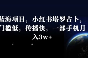课程来自于 蓝海项目,小红书塔罗占卜,门槛低,传播快,一部手机月入3w+