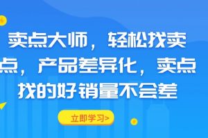 课程来自于 卖点 大师,轻松找卖点,产品差异化,卖点找的好销量不会差