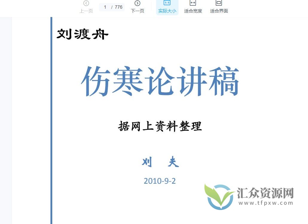 课程来自于伤寒论:刘渡舟-北京中医药大学(全29集完整版+讲稿776页)