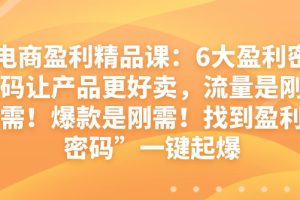 课程来自于 电商盈利精品课:6大盈利密码让产品更好卖,流量是刚需!爆款是刚需!找到盈利密码”一键起爆