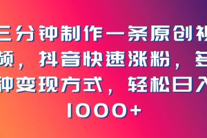 课程来自于 三分钟制作一条原创视频,抖音快速涨粉,多种变现方式,轻松日入1000+【揭秘】