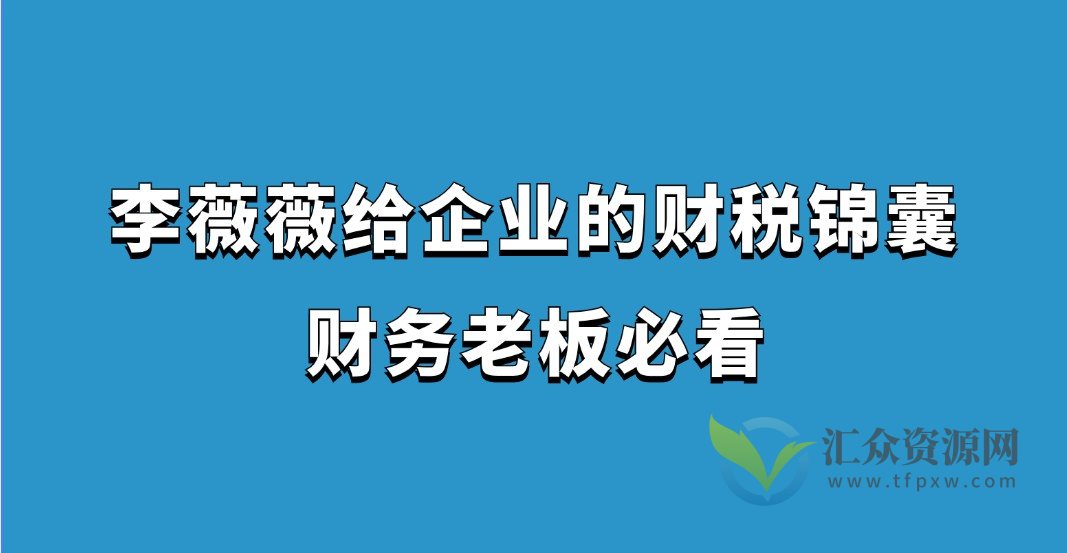 课程来自于李薇薇给企业的财税锦囊 财务老板必看