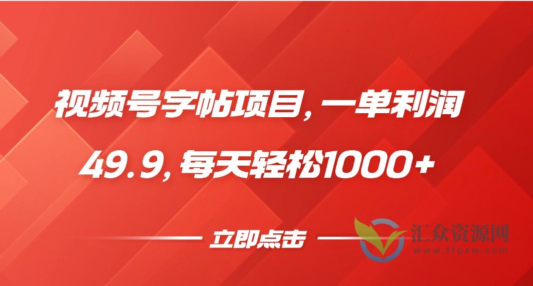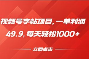 课程来自于 视频号字帖项目,一单利润49.9 ,每天轻松1000+(附全套字帖)