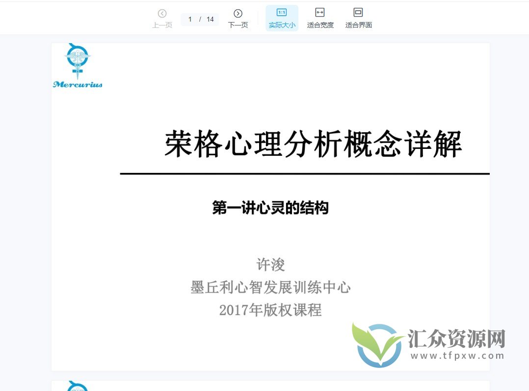 【完结】许浚 荣格心理学概念(荣格中级十讲)网络课程录音+课件PDF
