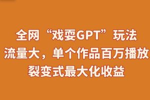 课程来自于 全网“戏耍GPT”玩法,流量大,单个作品百万播放,裂变式最大化收益【揭秘】