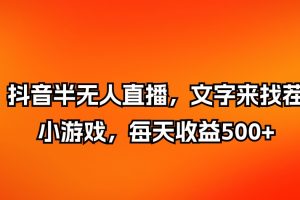课程来自于 抖音半无人直播,文字来找茬小游戏,每天收益500+