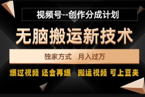 课程来自于 视频号无脑搬运新技术,破原创壕流量,独家方式,爆过视频,还会再爆