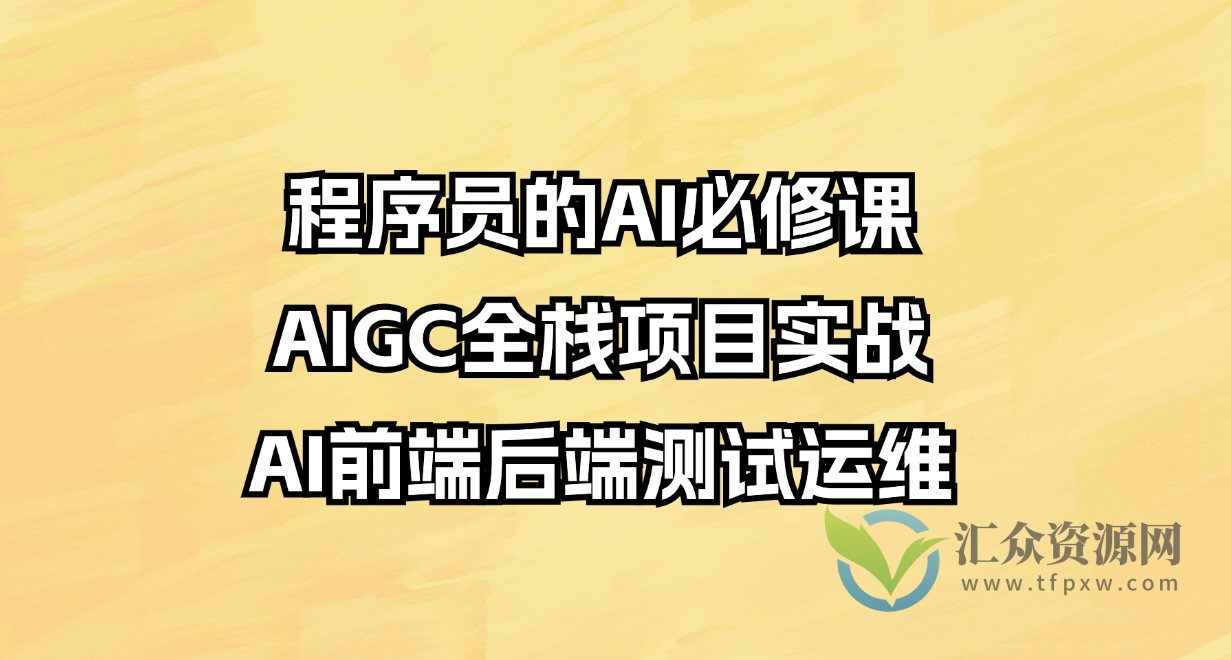 《程序员-AI必修课,AIGC 全栈项目实操》震撼上线!无论您是前端大神、后端高手、测试达人,还是运维专家,这门课程都将带您深入全栈,掌握AI在各个领域的应用。