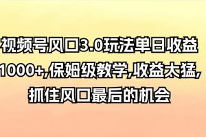 课程来自于 视频号风口3.0玩法单日收益1000+,保姆级教学,收益太猛,抓住风口最后的机会